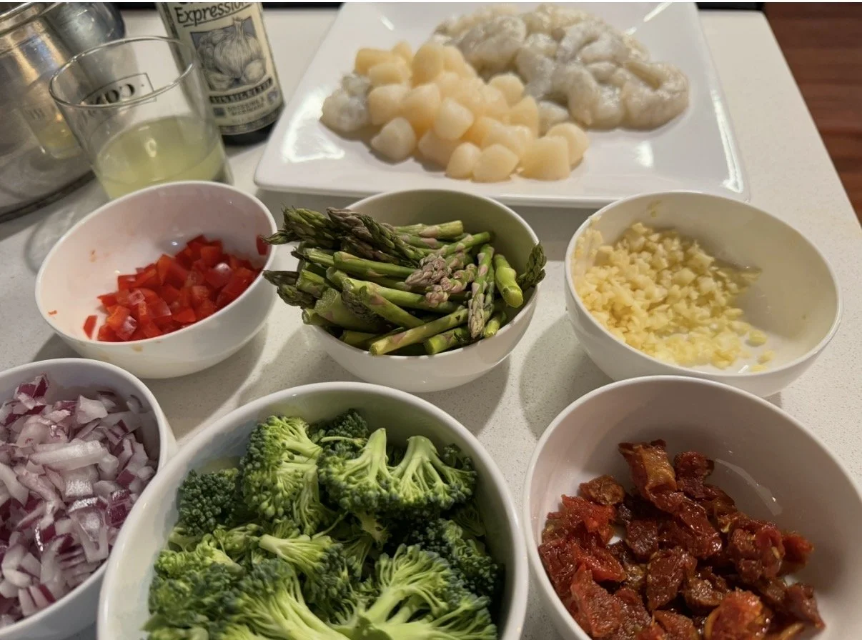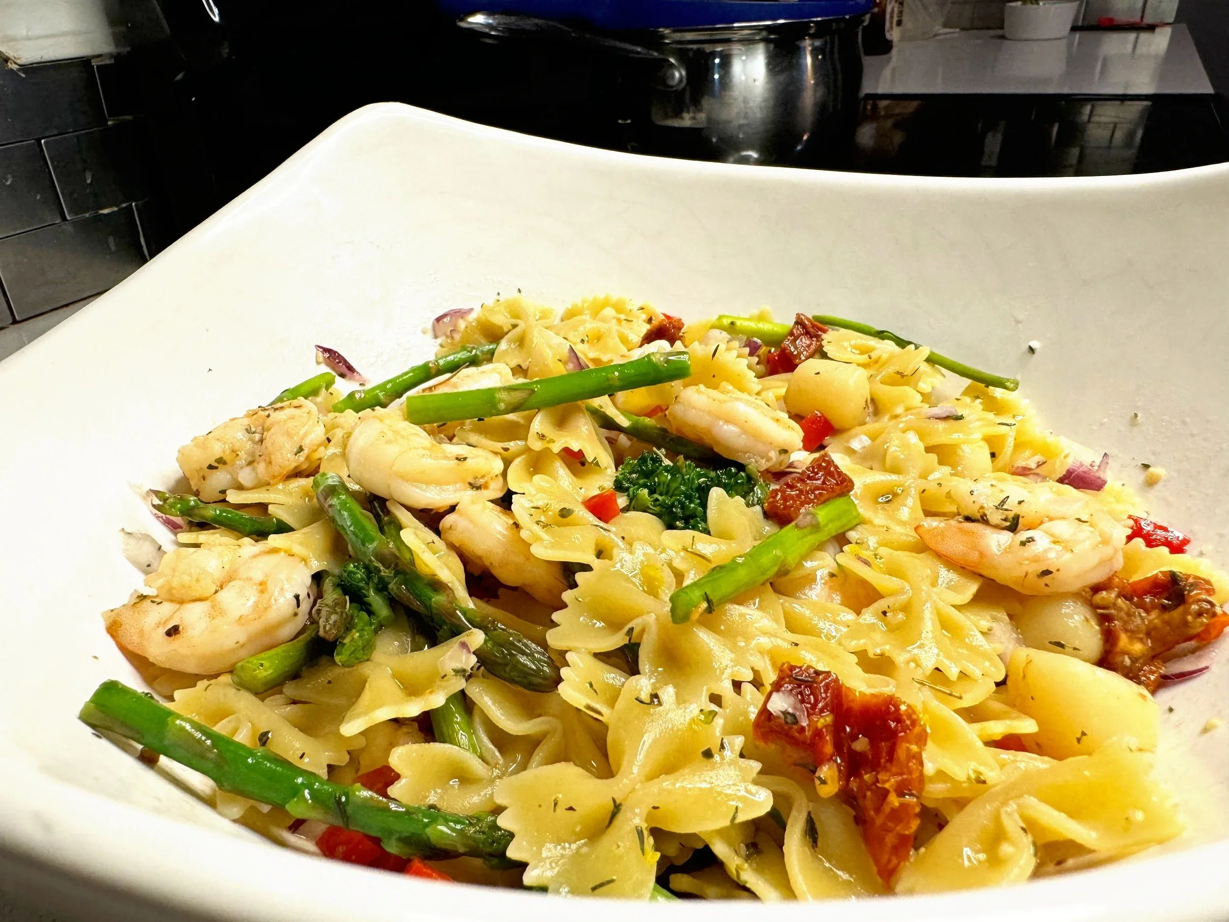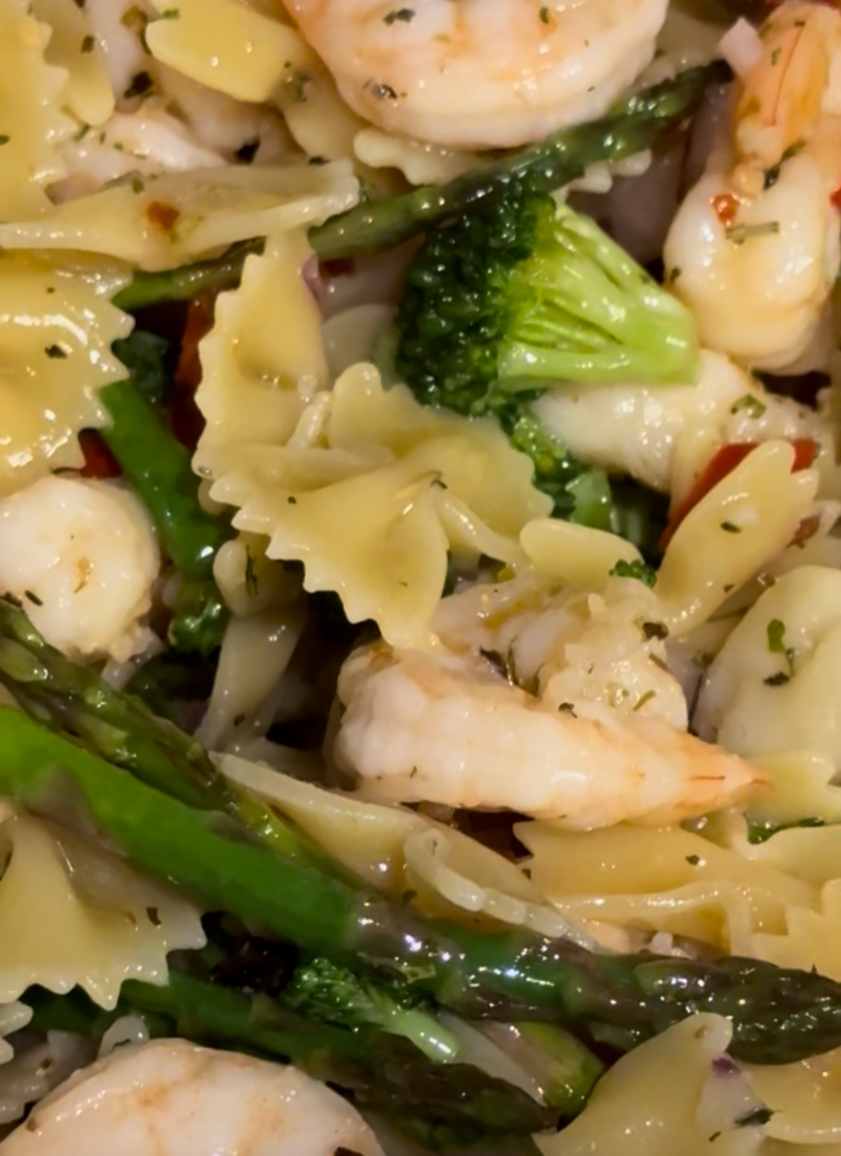 Dive into the fresh, zesty flavors of this cold seafood pasta salad that's perfect for any occasion. Tender shrimp and scallops are tossed with crisp asparagus, broccoli, sun-dried tomatoes, and red onions, all brought together with pasta and a bright lemon garlic vinaigrette. A sprinkle of CRAVE Italian and All-Purpose Seasoning adds the perfect finishing touch to this light, flavorful dish. It's a refreshing bite of coastal comfort in every forkful.